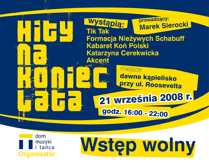 Hity na koniec lata – to hasło muzycznej imprezy, która 21 września odbyła się na terenie dawnego kąpieliska przy ul. Roosevelta. W programie przewidziano występy kabaretowe, dużo dobrej muzyki oraz program dla dzieci.