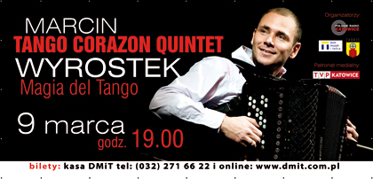 Długo wahał się czy iść na casting do programu „Mam talent”. Na szczęście postanowił spróbować. Dzięki temu poznała go cała Polska. I cała Polska usłyszała, jak fenomenalne dźwięki można wyczarować z akordeonu. Marcin Wyrostek i Tango Corazone Quintet zaprezentowali się w marcu przed zabrzańską publicznością.