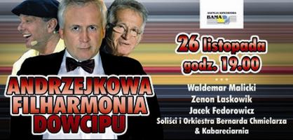 Muzyczno – kabaretowe show Waldemara Malickiego i Jacka Kęcika - „Filharmonia Dowcipu” znów na scenie Domu Muzyki i Tańca. Widowisko będzie można zobaczyć w Domu Muzyki i Tańca 26 listopada o godz. 19.00.