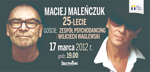 W marcu na zabrzańskiej scenie Maciej Maleńczuk świętować będzie swoje 25-lecie pracy artystycznej. Towarzyszyć mu będzie zespół PSYCHODANCING oraz gość specjalny: WOJCIECH WAGLEWSKI.