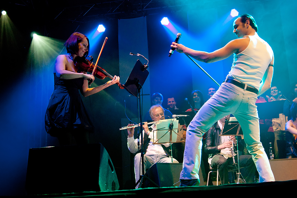 Będzie to niezwykłe wydarzenie zarówno dla fanów rocka, jak i muzyki poważnej! Projekt Queen Symfonicznie to wyjątkowe aranżacje utworów zespołu Queen na chór i orkiestrę w formie dwuczęściowego spektaklu w wykonaniu filharmoników Alla Vienna, 19-osobowego chóru Vivid Singers oraz śpiewającego aktora wcielającego się w rolę Freddiego Mercury’ego. Koncert podzielony jest na dwie części. W pierwszej, „klasycznej”, zabrzmią utwory zróżnicowane stylistycznie, w wybiórczy sposób odzwierciedlające dyskografię zespołu - od pierwszych płyt z lat siedemdziesiątych aż po utwór „Let Me Live” z płyty „Made In Heaven” wydanej w 1995 roku. To najbardziej znane utwory Queen, przygotowane specjalnie przez Jana Niedźwieckiego, lidera zespołu Alla Vienna, na co dzień kontrabasistę Filharmonii Łódzkiej. Druga część koncertu to show w stylu zespołu Queen. Największe hity grupy zabrzmią w rockowych aranżacjach: gitara basowa zamiast kontrabasu, dynamiczne nagłośnienie, kolorowe światła... A na deser – po „Bohemian Rhapsody” (będzie to unikalne wykonanie – cała rapsodia na żywo; nawet podczas koncertów Queen część operowa odtwarzana była z taśmy), na scenie pojawi się sam... Freddie Mercury (w tej roli śpiewający aktor) wykonując utwory „We Will Rock You” oraz „We Are The Champions”. Premiera tego projektu odbyła się 30 listopada 2011 r. w łódzkim klubie Wytwórnia. Przybyło na nią około 1200 osób, a biletów brakło już na dwa dni przed koncertem! Publiczność nagrodziła artystów owacjami na stojąco i zmusiła ich do trzykrotnego bisowania. Zapraszamy więc Państwa na niezwykłe widowisko.