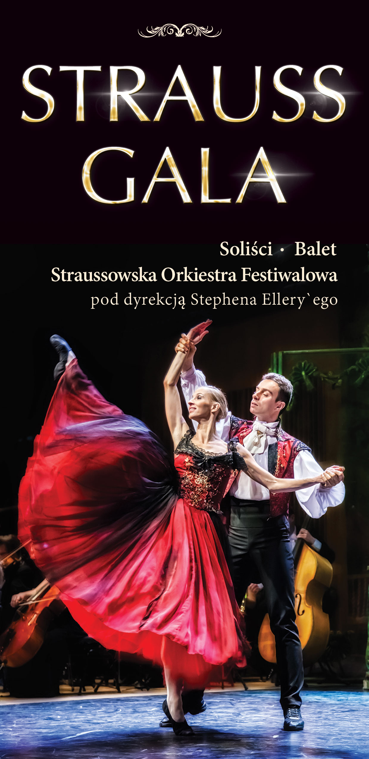 Strauss Gala to znakomicie wyreżyserowany, pełen uroku spektakl w przepięknych kostiumach z nostalgicznej epoki słynnego Franciszka Józefa. To muzyczna podróż do krainy walca - świata pełnego gwaru, wirujących sukien, pięknych kobiet i flirtujących oficerów. Straussowska Orkiestra Festiwalowa pod dyrekcją Stephena Ellery`ego zaprezentuje najsłynniejsze kompozycje rodziny Straussów. W programie koncertu znajdziemy cudowne walce, zabawne polki oraz najpopularniejsze fragmenty z operetek: Zemsta nietoperza, Baron cygański, Wiedeńska krew, Noc w Wenecji. Nie zabraknie oczywiście słynnego walca Nad pięknym modrym Dunajem jak również Marsza Radetzkiego. Stylowe układy choreograficzne prezentowane przez balet oraz wspaniali soliści z pewnością sprawią, że spektakl ten będzie niezapomnianym przeżyciem. Ten jedyny w swoim rodzaju koncert zachwycił już tysiące widzów w Polsce i zagranicą. Prezentowany był w salach koncertowych i operach wielu europejskich miast, m.in. w Berlinie, Zurychu, Oslo, Kopenhadze czy Brukseli. Straussowska Orkiestra Festiwalowa występująca za granicą pod nazwą European Strauss Orchestra od sześciu lat regularnie na przełomie roku odbywa tournée po Chinach, gdzie ich koncerty obejrzało już kilkaset tysięcy widzów. Zatem już dziś zapraszamy Państwa do beztroskiej, wspólnej zabawy w muzycznym saloniku wiedeńskim, bo … Wielka sława to żart … |