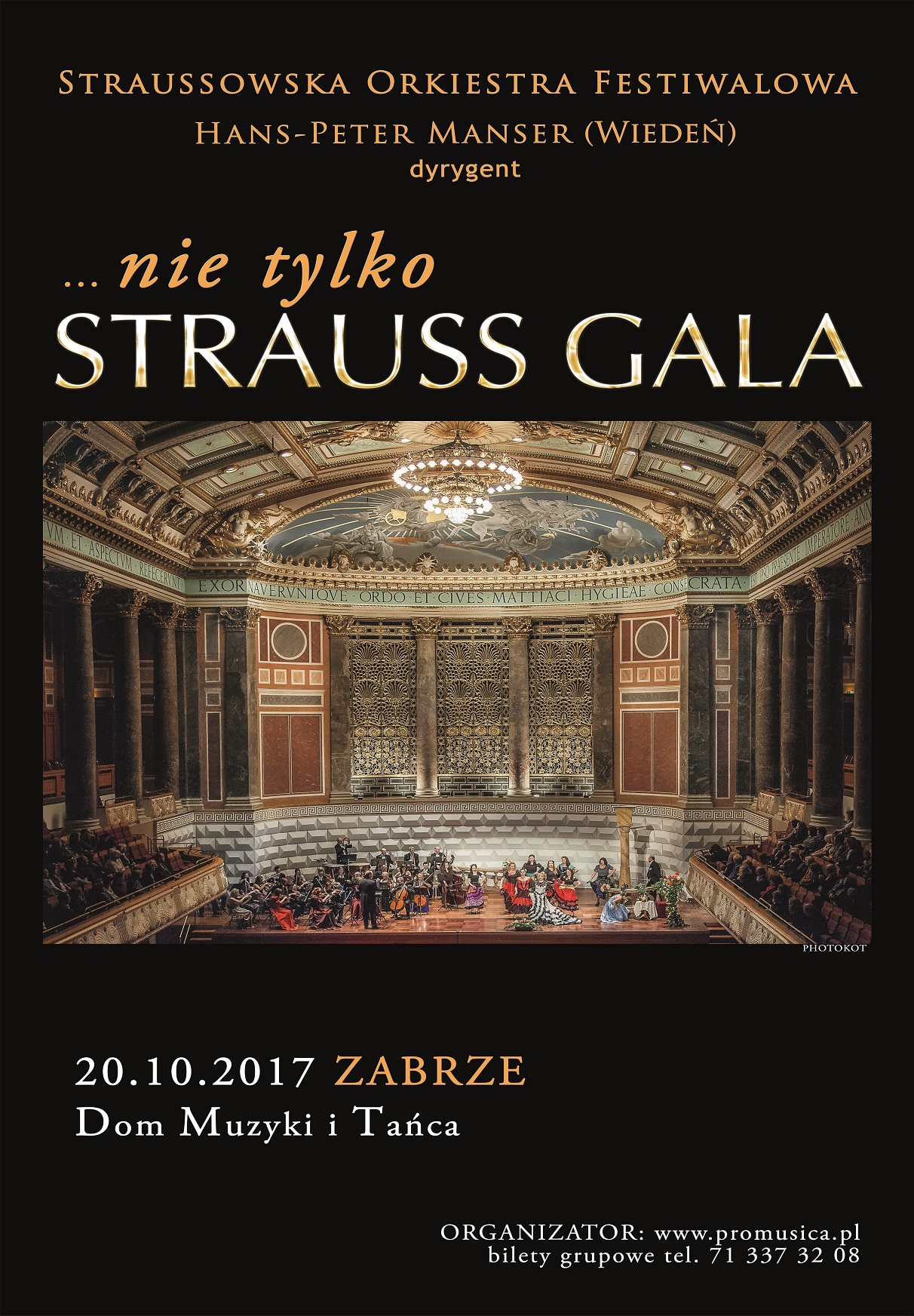 KONCERT NA JESIENNĄ CHANDRĘ !Europejska Orkiestra Straussowska pod dyrekcją Hansa-Petera Mansera oraz znakomici soliści – Anita Maszczyk, Monika Piechaczek, Anna Jankowiak, Jarosław Zawartko, Tomasz Tracz - w nowym projekcie koncertowym – Nie tylko STRAUSS GALA. Już dziś zapraszamy Państwa do Wiednia, gdzie od blisko 150 lat niezmiennie na balach króluje walc, a melodie operetkowe nuci niemal każdy mieszkaniec tego miasta. Również i nasz wieczór koncertowy wypełni muzyka najsłynniejszych twórców przebojów operetkowych - Straussa, Lehara i Kalmana. Nie tylko STRAUSS GALA to niemal dwie godziny znakomitej zabawy publiczności z solistami, bo któż nie zakołysze się choćby do takich popularnych, jak „Usta milczą, dusza śpiewa”, czy „Wielka sława to żart”. W programie obok operetek – Hrabina Marica, Wesoła wdówka, Bal w Savoyu, Giuditta, Księżniczka czardasza, Kraina uśmiechu, Baron cygański, Zemsta nietoperza - znajdą się również fragmenty musicali - My fair Lady, Skrzypek na dachu, West side story, a także Czardasz Montiego oraz straussowskie polki, czardasze i walce. Europejska Orkiestra Straussowska, licząca 40 osób, od kilku już lat z wielkim powodzeniem koncertuje w Polsce oraz w Chinach. W 2016 roku współpracę z orkiestrą rozpoczął wszechstronnie utalentowany, pochodzący z Wiednia dyrygent Hans-Peter Manser, szef Kammerorchester Vienna Sinfonietta, aranżer i kompozytor. W tym roku przygotuje |
