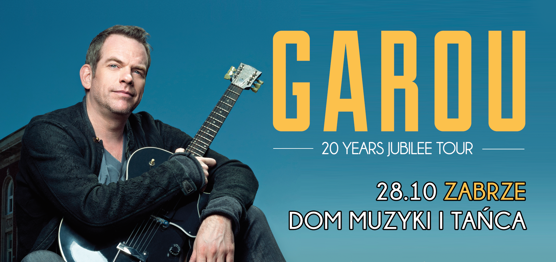 Tego artysty nie trzeba nikomu przedstawiać. Rewelacyjny, znany i kochany przez publiczność na całym świecie GAROU wystąpi w jubileusz 20-lecia swojej pracy artystycznej, w Polsce. Największe przeboje czarującego muzyka usłyszymy na przełomie października i listopada 2018 r., w 5 miastach: Zabrzu, Warszawie, Wrocławiu, Krakowie oraz Lublinie.