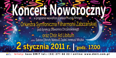 Miłośnicy muzyki operetkowej od lat mają swoją ucztę w Nowy Rok, kiedy to w telewizji odbywa się transmisja koncertu Filharmoników Wiedeńskich. Koncerty te odbywają się od 1939 roku i cieszą się niesłabnącym zainteresowaniem. Od kilku lat Zabrze może pochwalić się podobną imprezą – na początku roku w Domu Muzyki i Tańca odbywają się koncerty noworoczne w wykonaniu Orkiestry Symfonicznej Filharmonii Zabrzańskiej pod dyrekcją Sławomira Chrzanowskiego. Tym razem czeka nas koncert, którego tematem będą największe przeboje muzyki filmowej, a z filharmonikami wystąpią soliści - Sabina Olbrich, Mateusz Zajdel i Ireneusz Miczka. Wykonawcom towarzyszyć będzie Chór Ad Libitum. Serdecznie zapraszamy!