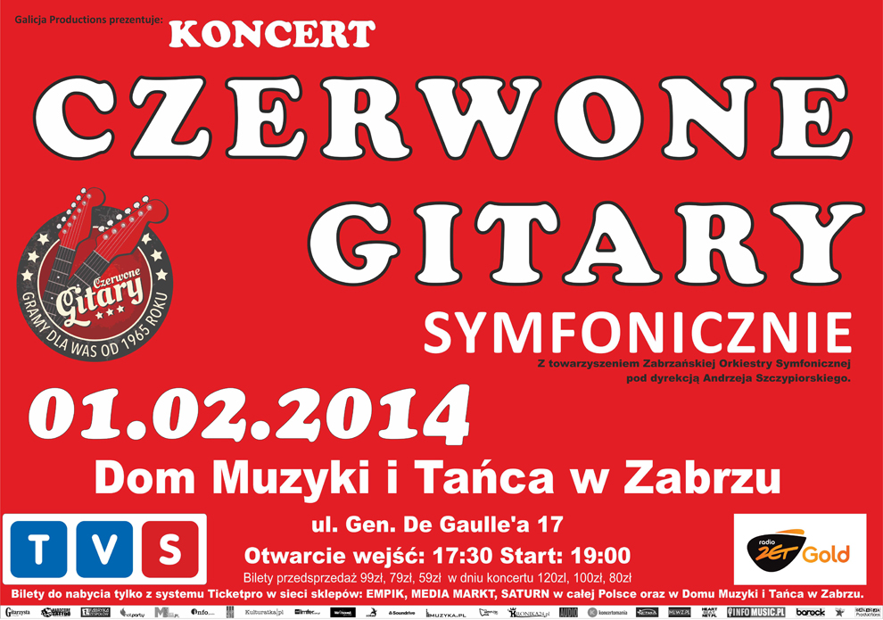 ![]() Czerwone Gitary Symfonicznie Legendarny zespół po raz pierwszy w swojej blisko 50 letniej historii CZERWONE GITARY prezentują swoje największe przeboje, wzbogacone brzmieniem Orkiestry Symfoników Gdańskich. Ten niezwykły projekt jest dziełem dwóch zespołów rodem z Trójmiasta. Ten projekt jest dziełem dwóch zespołów z Trójmiasta, Orkiestry Symfoników Gdańskichpod dyrekcją Andrzeja Szczypiorskiego oraz zespołu Czerwone Gitary. O Czerwonych Gitarach na okładkach czarnych płyt pisano: Malownicza grupa z Wybrzeża widniejąca na kopercie tej płyty jest obecnie niemal synonimem naszego rodzinnego big beatu. Niesłychany dynamizm gry i śpiewu, wielka brawura, swoboda i humor to wielkie walory tego zespołu, lecz nie jedyne (...). Nic się nie zmieniło, zespół nadal daje niesamowicie dynamiczne i brawurowe koncerty. Mimo upływu lat nadal jest ikoną polskiej muzyki, najbardziej rozpoznawalną marką, czymś do czego my, Polacy jesteśmy przyzwyczajeni niemal od urodzenia. Piosenki takie jak "Nie zadzieraj nosa", "No bo ty się boisz myszy", "Matura" na stałe weszły do kanonu muzyki, zaś kolejne pokolenia potrafią je bez zastanowienia zaśpiewać. Zapraszamy !!! |