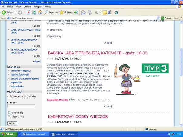 imprezy pojawi się następna strona portalu ze szczegółowym opisem imprezy i