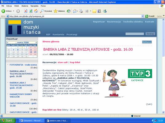 Strona systemu - strona systemu sprzedaży wywoływana po wybraniu łącza kup bilet