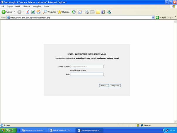 należy wprowadzić własny adres e-mail oraz litery i cyfry z obrazka pomiędzy