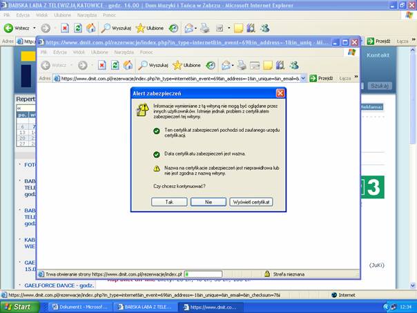 Po pojawieniu się komunikatu o zabezpieczeniach należy wybrać przycisk „Tak” aby przejść dalej.